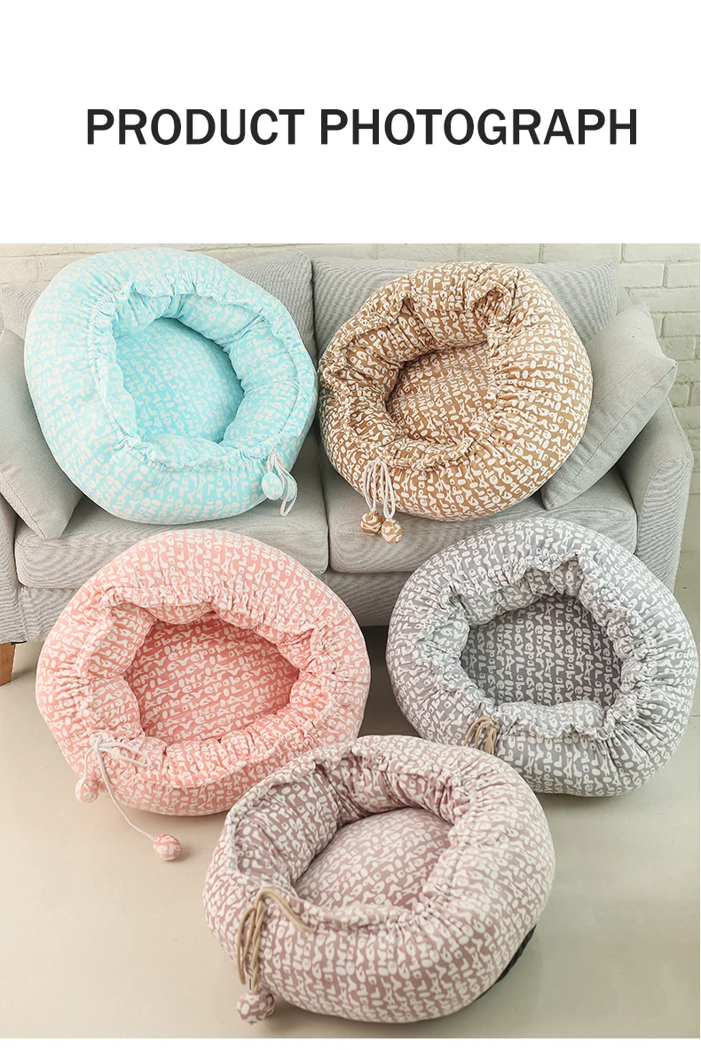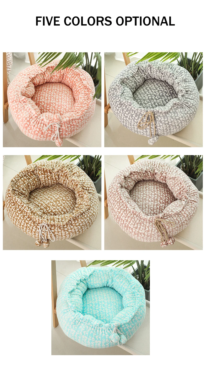 Warm Comfortable And Soft Shelter For Pets Plush Round Adjustable Bed Nest